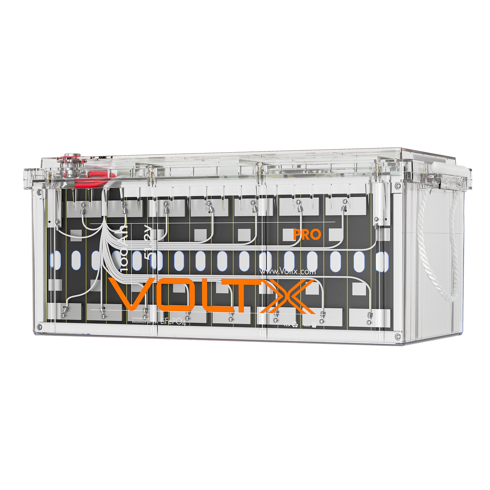Experience transparent quality with the VoltX 48V 100Ah Premium Lithium Battery. Its clear case showcases the expertly built, high-grade components, making it an excellent choice for applications that require high-voltage output. With a prismatic cell composition and integrated battery management system (BMS), this power pack delivers the stable, reliable power you need.